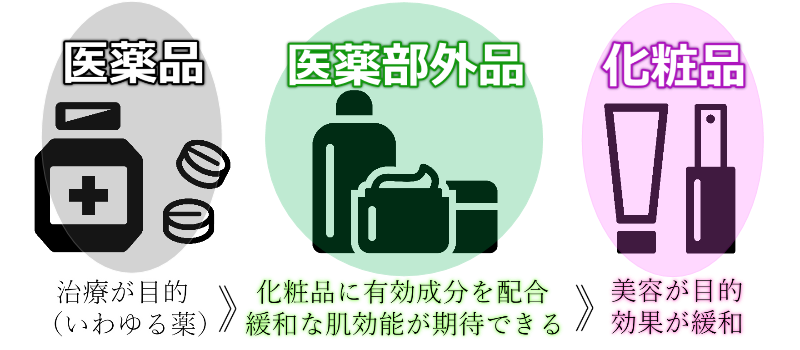 | 効果 | 承認された緩和な肌効能が期待できる | 美容を目的とした作用が緩和なもの |